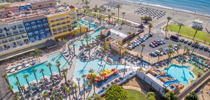 Uno de los hoteles para familias más conocidos de Benidorm, a solo 5 minutos de la playa se encuentra este hotel de temática africana, contando con el parque acuático African Emotion. Un espectacular hotel con toboganes en Benidorm.